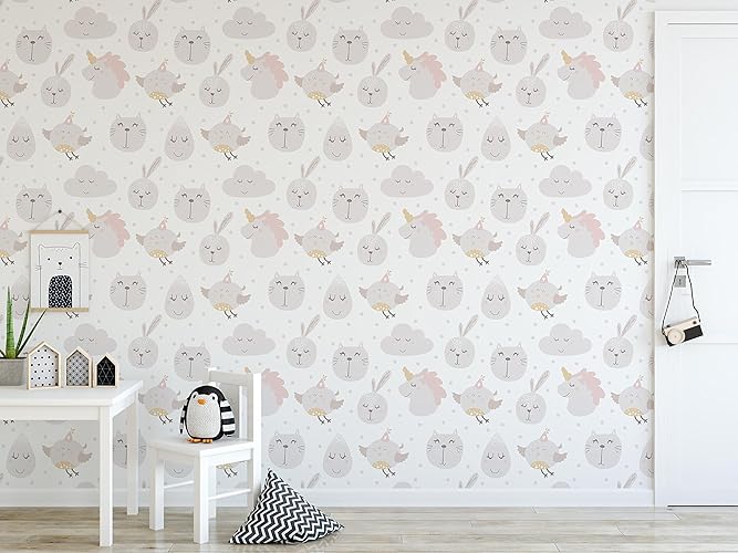 Amazon Com Pastel Color Kids Wallpaper With Cute Unicorns Clouds