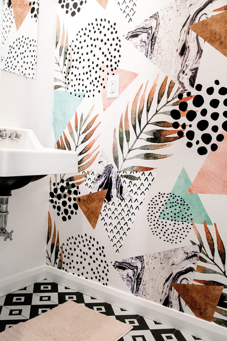 Abstract Palm Leaf Wallpaper Pastel Colors Peel And Etsy